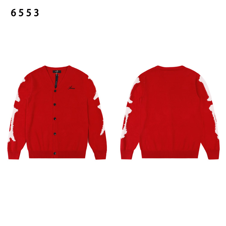 AMIRI Embroidered Logo Single-Breasted Cardigan V-Neck Long-Sleeve Knit Sweater-4558