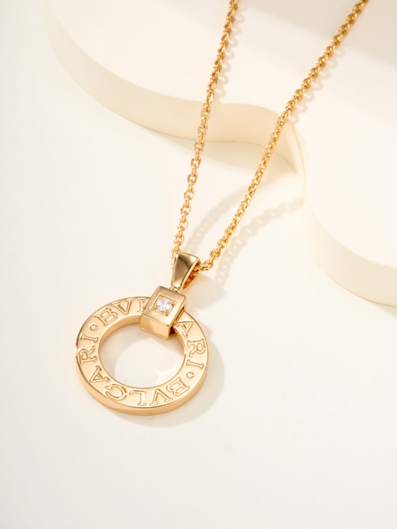 Home > Bulgari logo engraved necklace logo letters on round pendant-3585