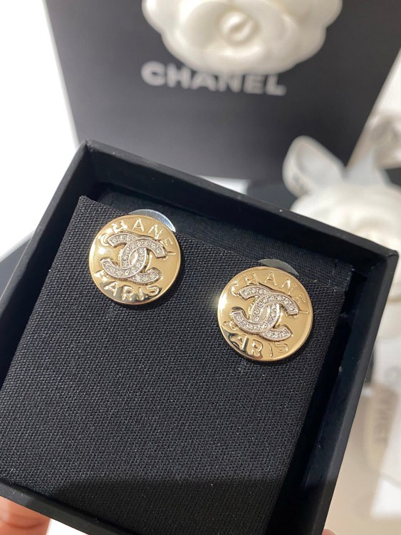 Home > Chanel gold and silver color matching round earrings-3592