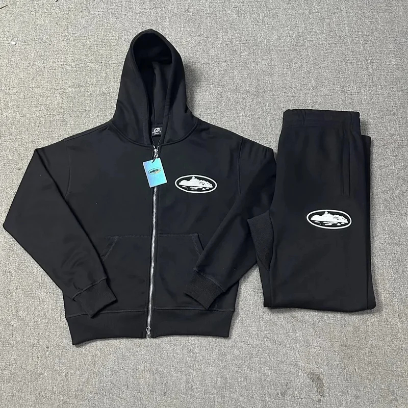 Corteiz Hooded Long Sleeve Zipper Sweatshirt and Sweatpants-4411