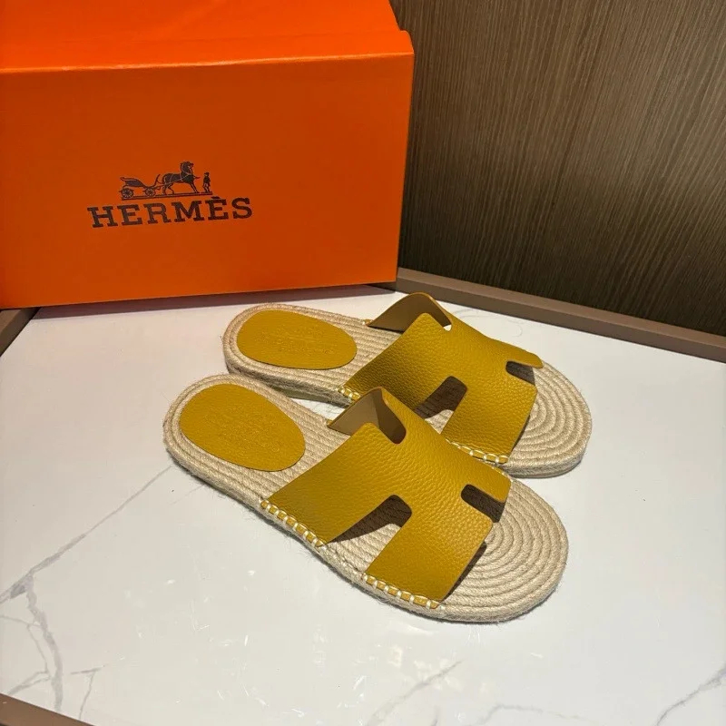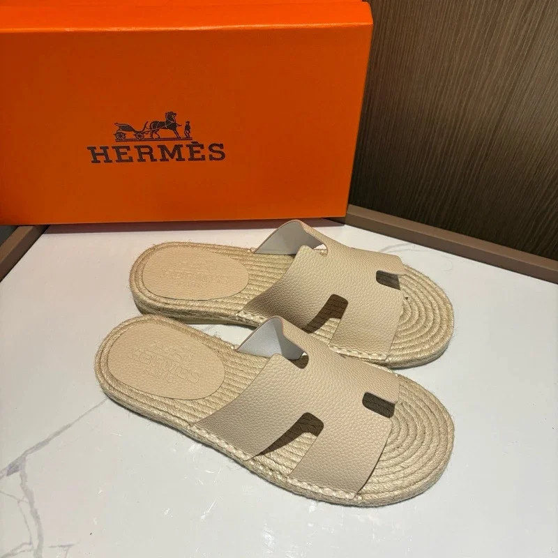 HERMES Antigua Suede Round-Toe Slip-On Sandals-5137