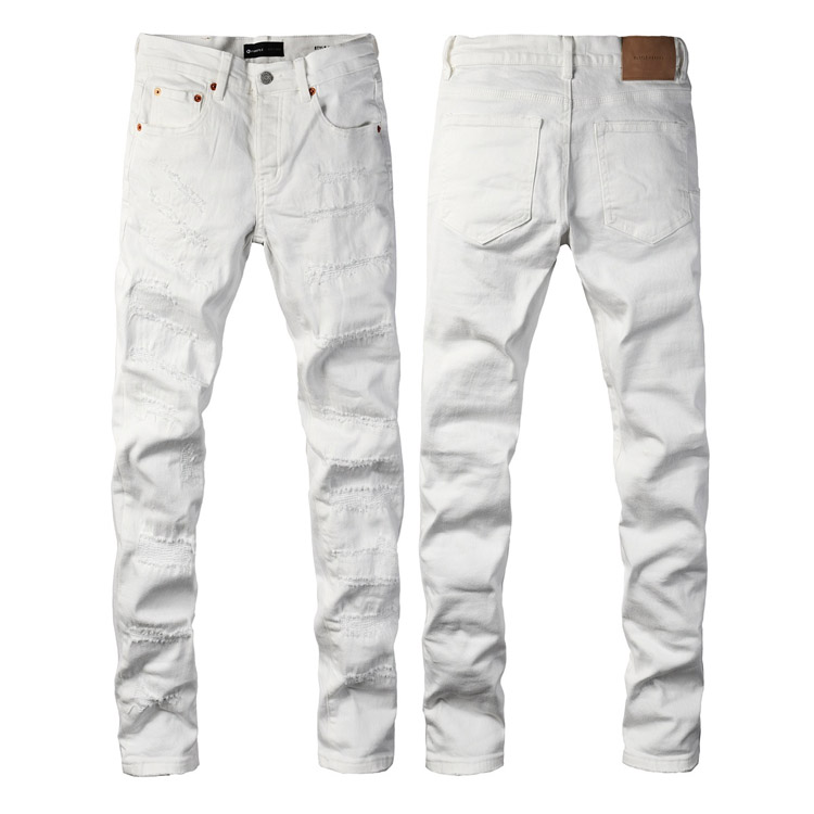 Purple Brand new embroidered slim-fit ripped print stretch jeans-4250