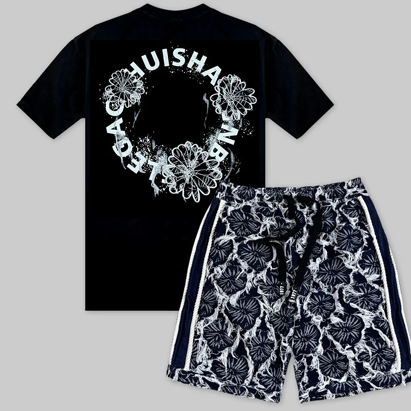 Summer Ice Silk Flower Shirt Short Sleeve Loose Suit (40 styles)-2783