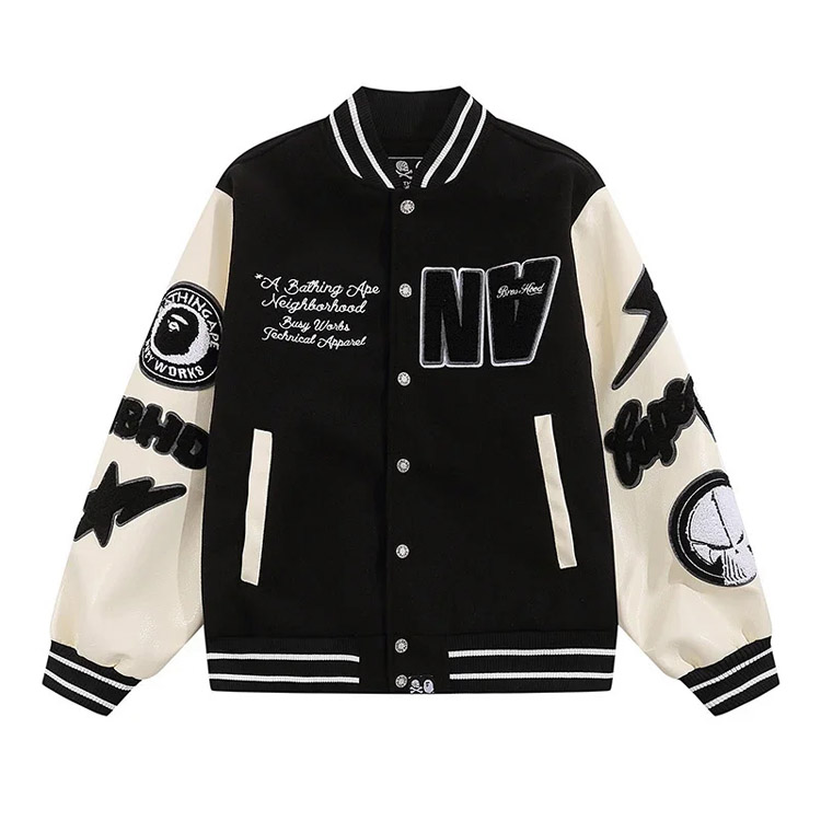 Home > BAPE Colorblock digital embroidered patch baseball jacket-4242
