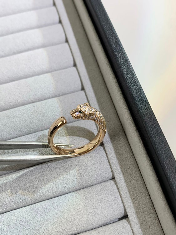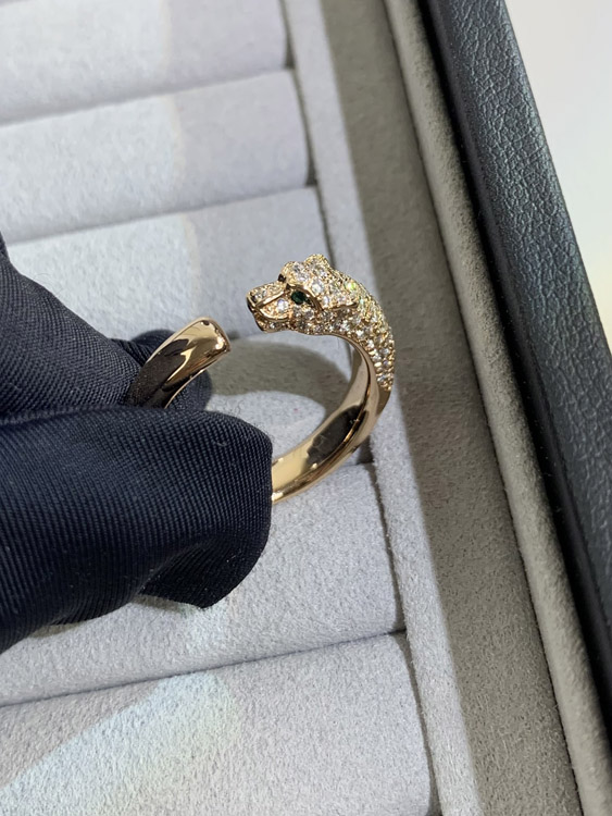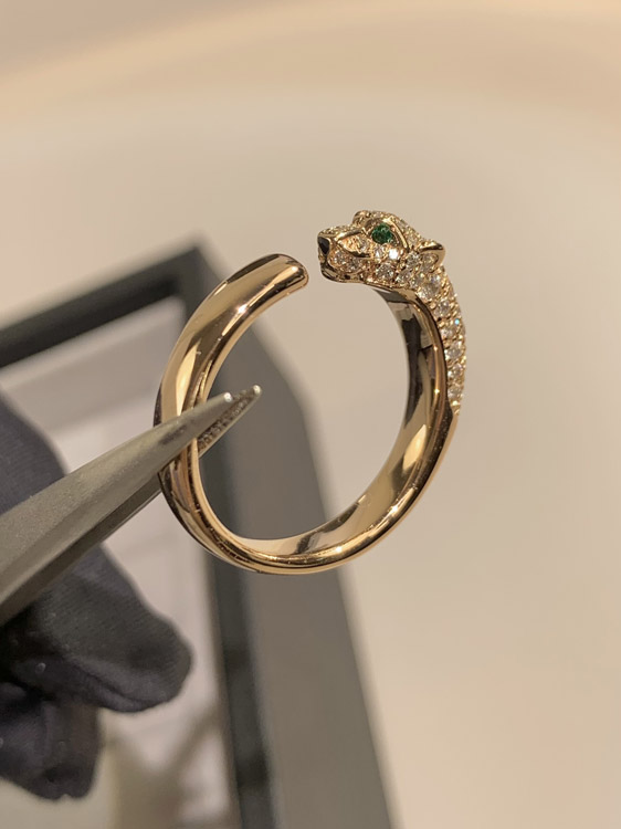 Cartier half diamond leopard micro inlaid ring-3556