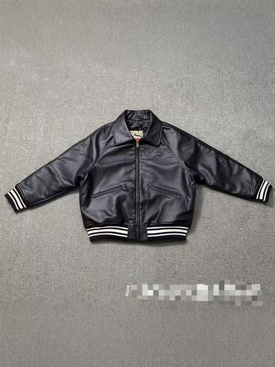 Corteiz Solid Color Lapel Collar Zip-Up Long-Sleeve Leather Jacket-5029
