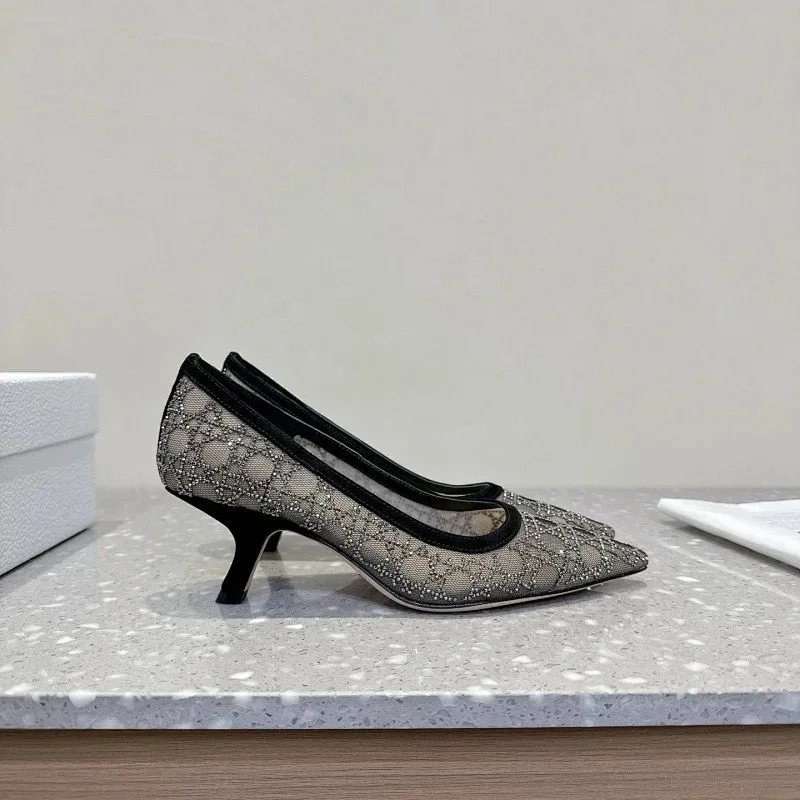 DIOR Capture pointed-toe mesh slingback kitten heels with rhinestone embellishments-5207