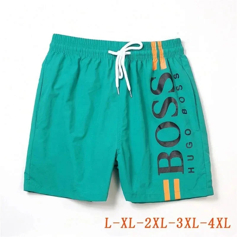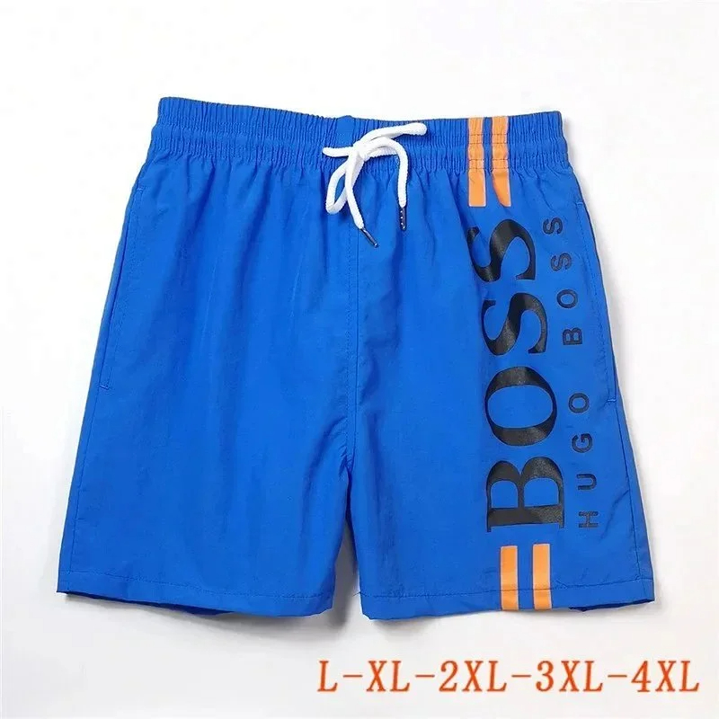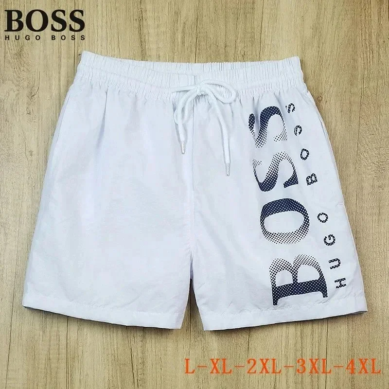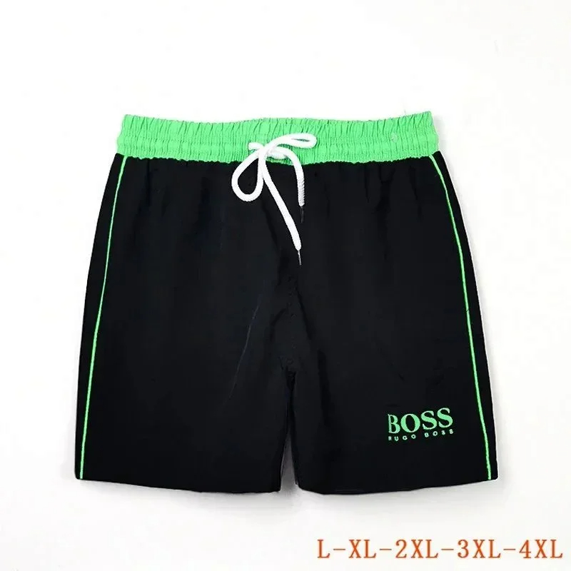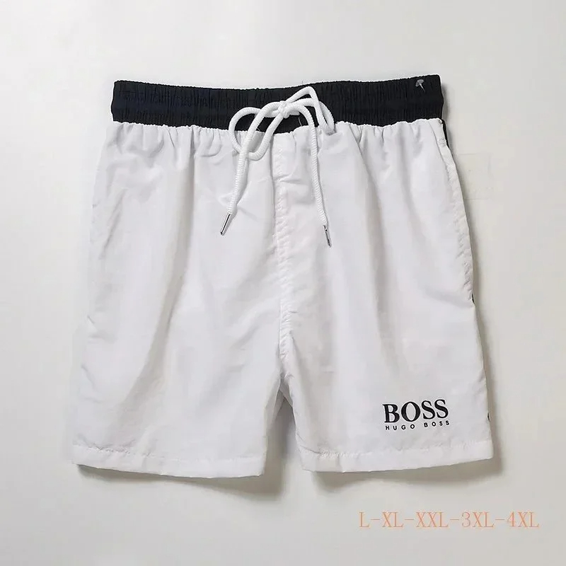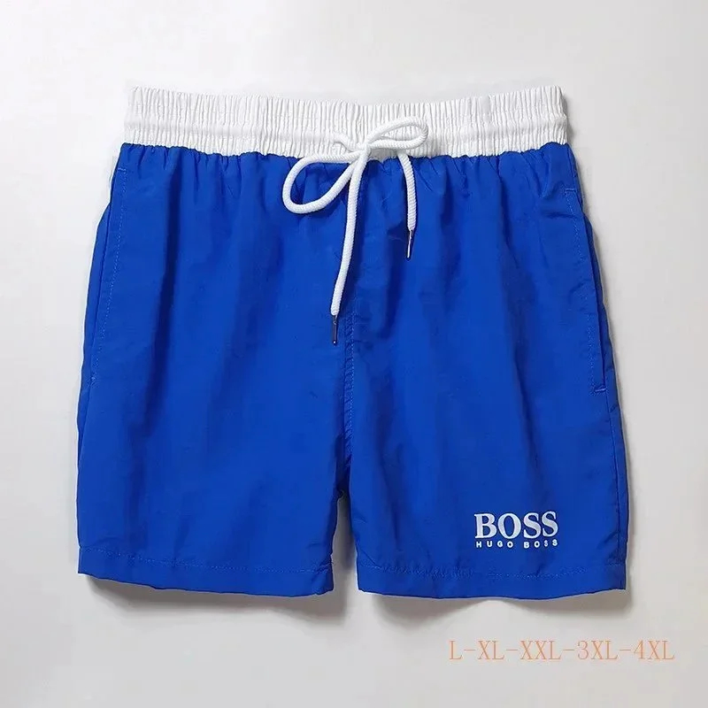 HUGO BOSS logo print quick-dry contrasting color waistband drawstring swim shorts-2881