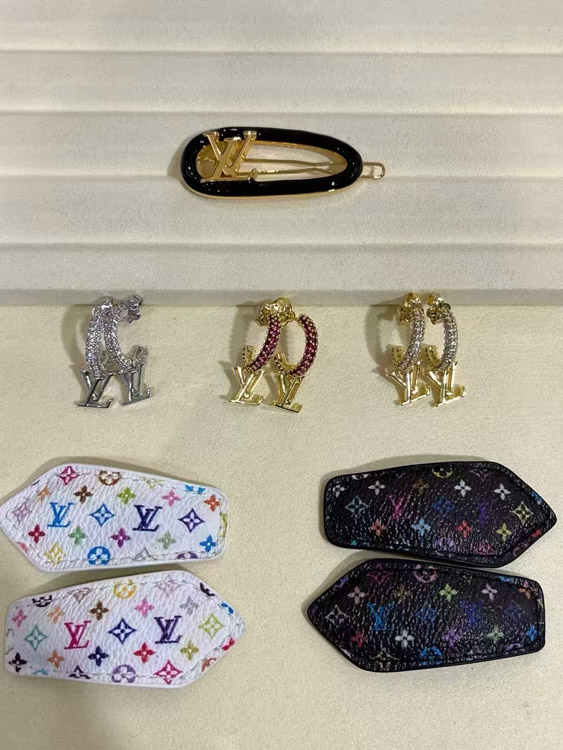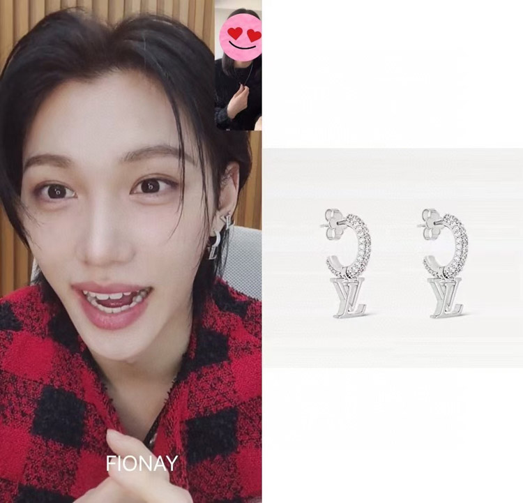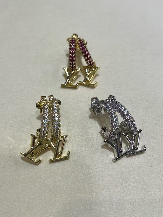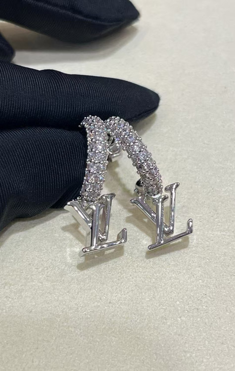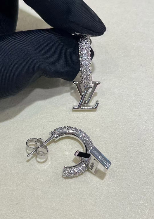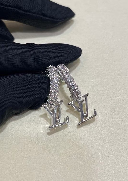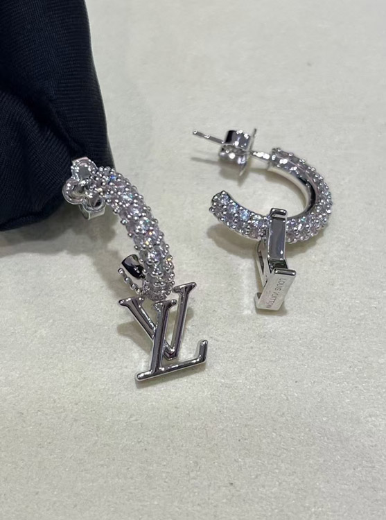 Louis Vuitton LV silver letter small pendant full diamond earrings-3723