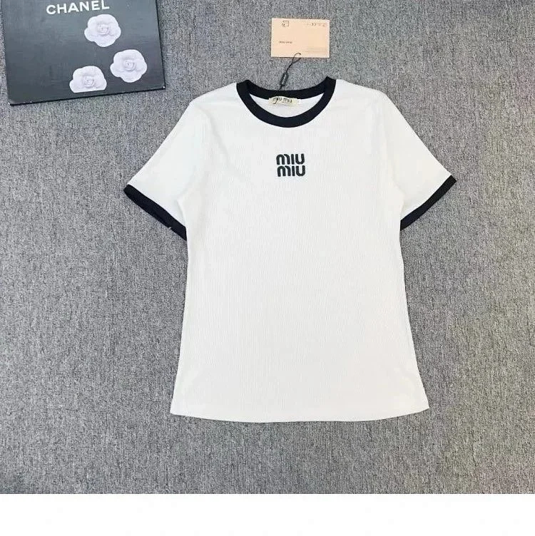 Home > MIUMIU 2025 New Round Neck Contrast Color Letter Print Loose Short Sleeve T-shirt-2583