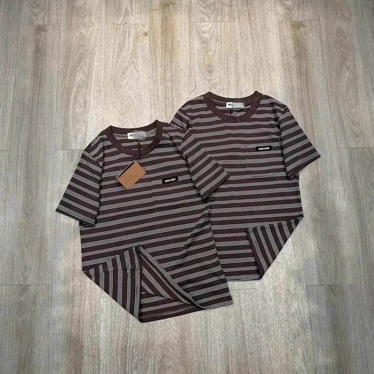 Home > MIUMIU Letter striped round neck short-sleeved T-shirt loose layered pure cotton unisex top pocket-2584