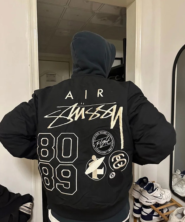 Nike x Stussy Collaboration Logo Embroidered Reversible Bomber Jacket-4815