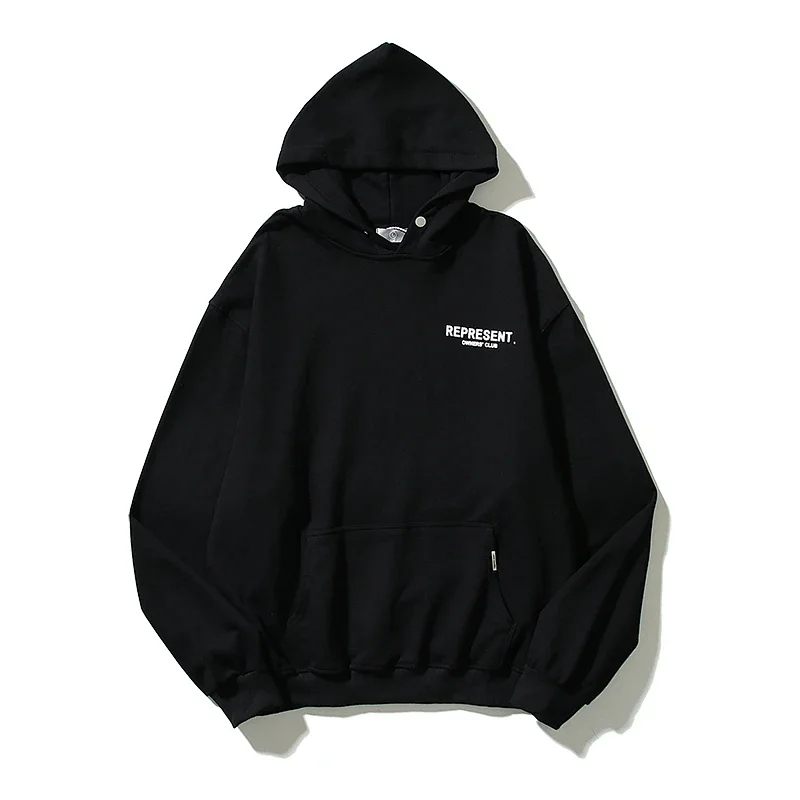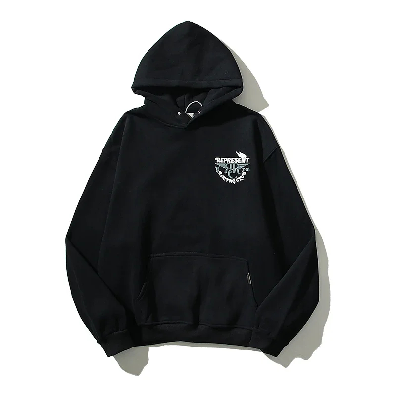 REPRESENT Printed Drawstring Hooded Jersey Sweatshirt-4497