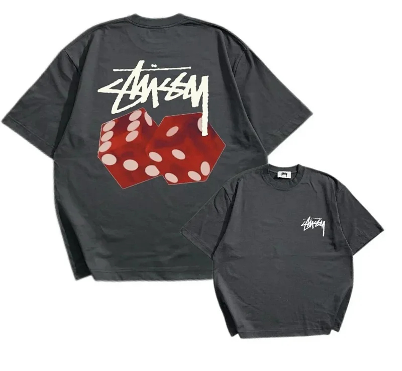 STU Summer flame poker print casual couple short-sleeved T-shirt(32 styles)-1877