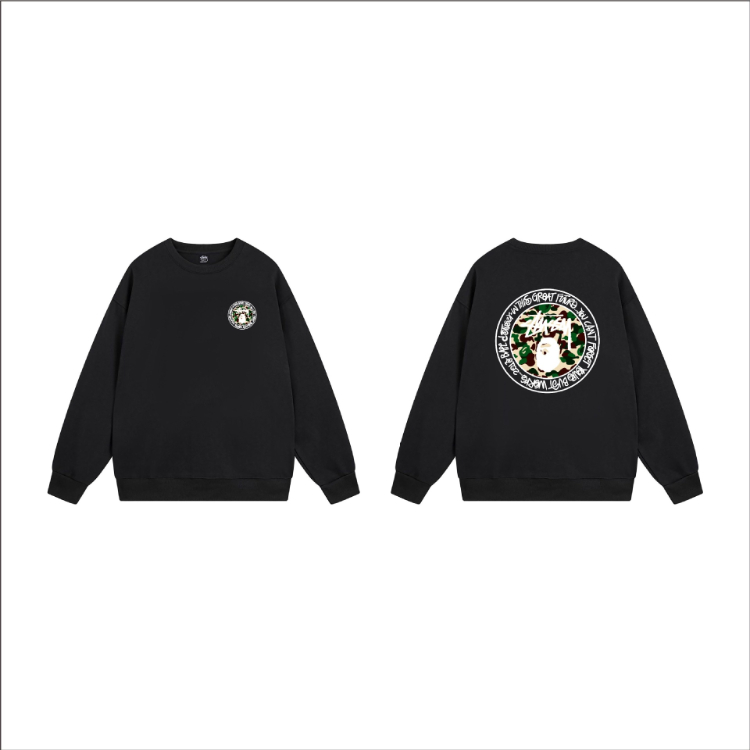 Stussy classic logo print black 8-ball long-sleeved crewneck sweatshirt-5278