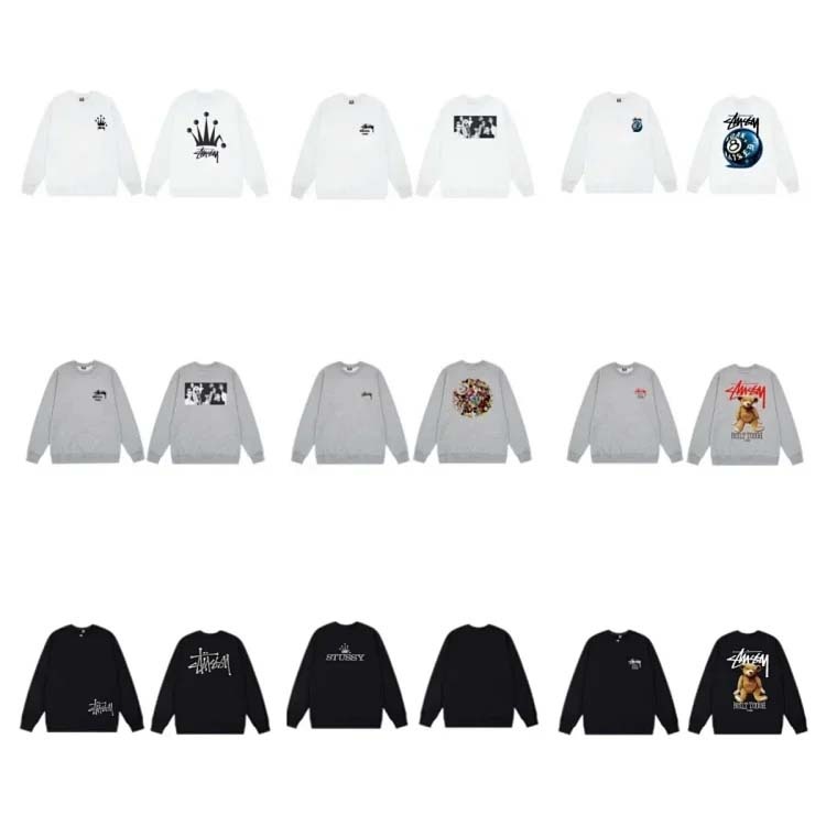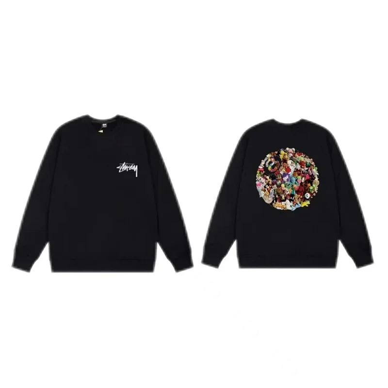 Stussy Stussy Angel Bear Flower Windmill Eight Ball Crown Print Sweatshirt-2219