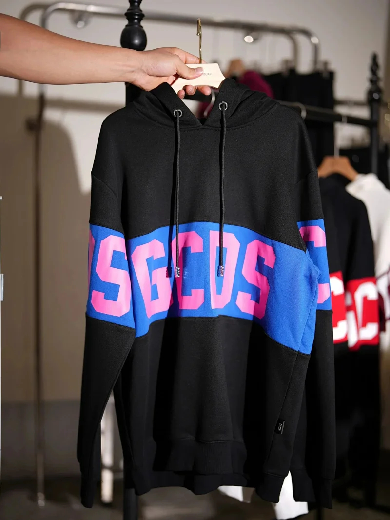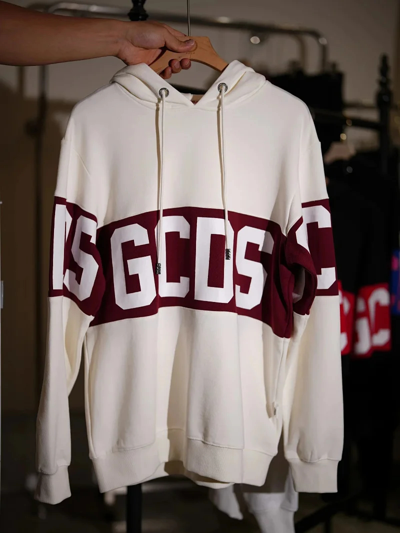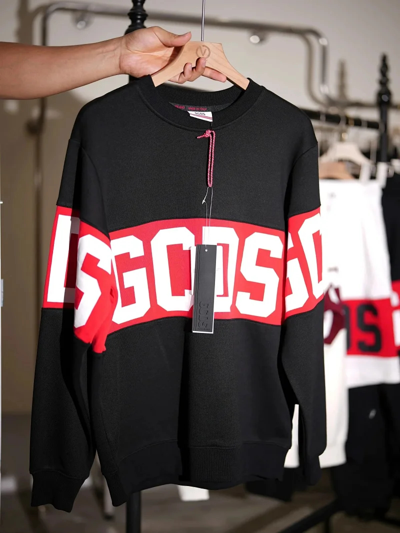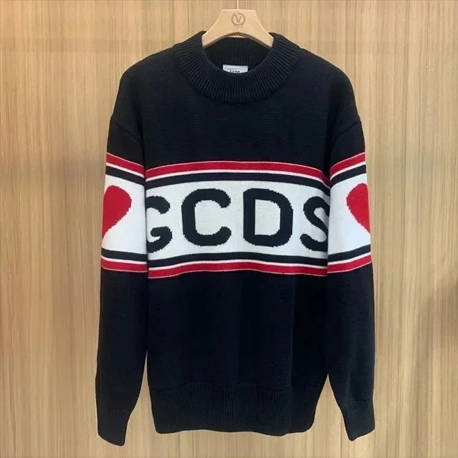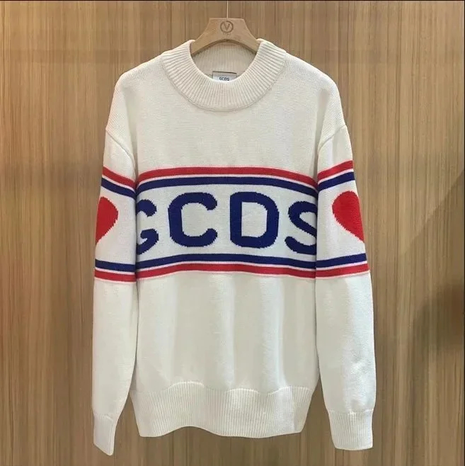 Sudadera GCDS Unisex classic white and red stitching round neck T-shirt sweater knitted sweater-2542