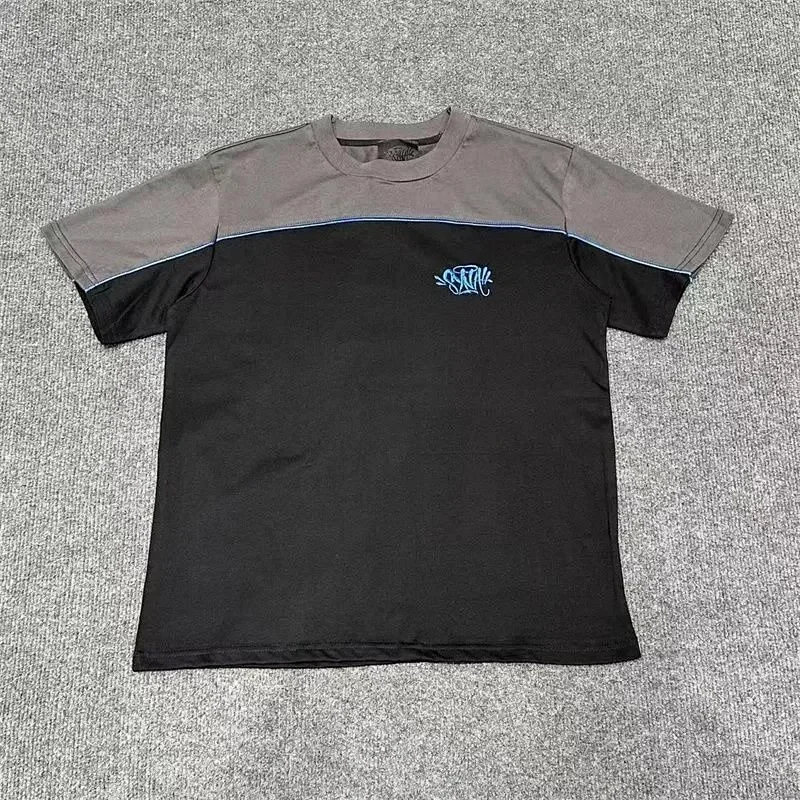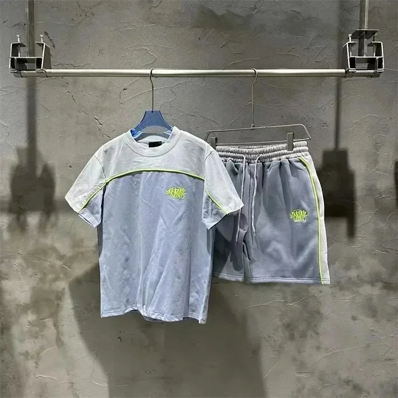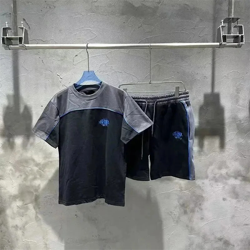 SynaWorld embroidered letter patchwork short-sleeved T-shirt shorts set-2789