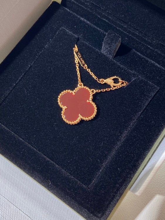 Home > Van Cleef & Arpels four-leaf clover gold red obsidian wide necklace-3790