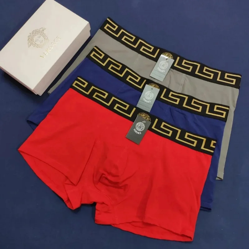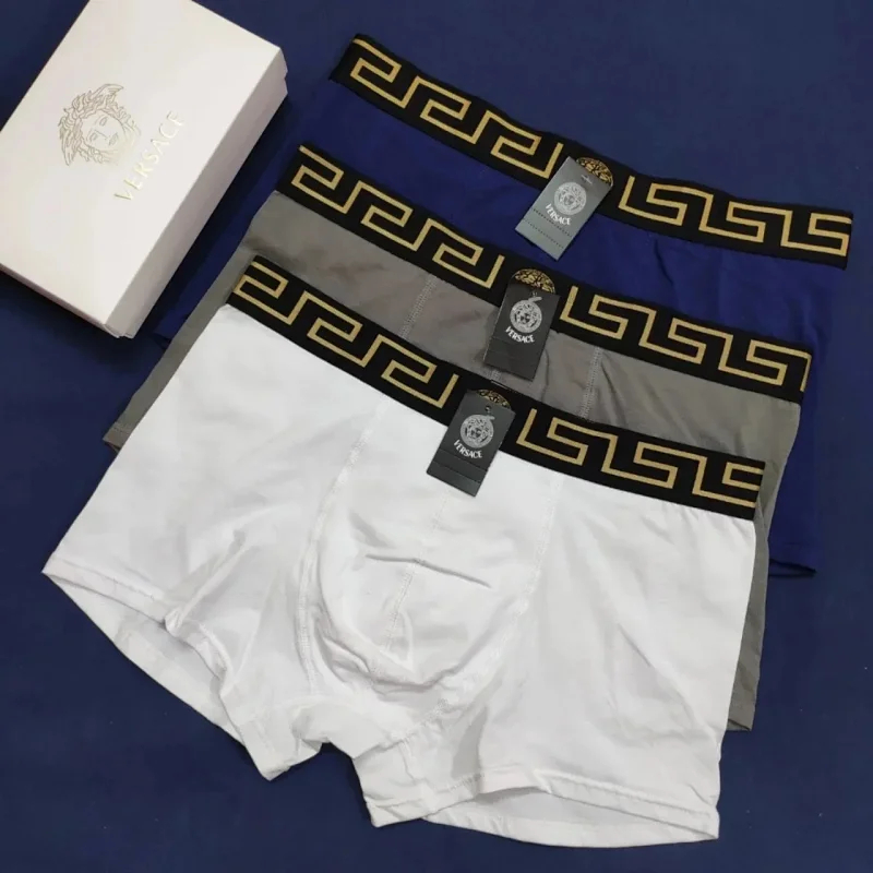 Versace Men's solid color fashionable underwear Stretch waistband embroidery boxer 3pcs(5 styles)-2363